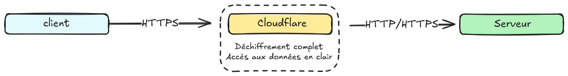 Le point crucial à retenir est que toutes les données transitent par l'infrastructure de Cloudflare, donnant à cette dernière une visibilité complète sur l'ensemble du trafic. Par conséquent, Cloudflare dispose techniquement de la capacité d'analyser ces données.