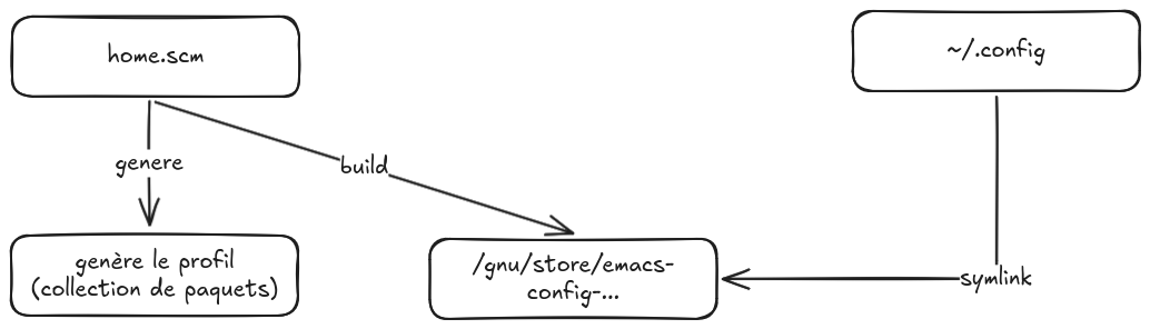 Guix Home fonctionne sur le même principe que les profils, mais gère l'environnement utilisateur complet de manière déclarative.